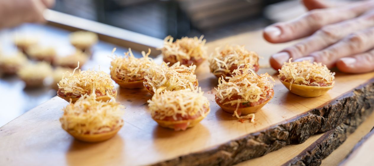SONNIGES ESSEN UND FREUNDE. Die rund 60 Gäste liessen es sich im wunderschönen Garten des Restaurants gut gehen. Philippe Deslarzes lächelt: «Seit einer Woche studieren wir ständig die Wetterprognosen. Heute Morgen waren wir noch nicht sehr zuversichtlich!» Glücklicherweise zeigte sich der Himmel dann doch strahlend blau, und die Sonne kam hervor. Als sonnig konnte man auch die Tartelettes mit Kalb, Tannenknospen und Kartoffelheu umschreiben, die das Duo vom «Les Touristes» zubereitet hatte. Die beiden Köche wurden infolge auch von Olivier Vallotton, einem der Gründungsmitglieder der JRE Schweiz, bei der Übergabe gelobt: «Martigny hat viele Persönlichkeiten hervorgebracht, Pascal Couchepin oder Christian Constantin. Und wir sind stolz darauf, auch Sie zwei in dieser schönen Stadt zu haben.»