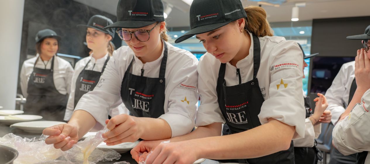 „Dieser Zweig ist immer überbucht.“, erzählt Direktorin Maria Wiesinger, „Wir können gar nicht alle Schüler:innen aufnehmen, die sich dafür interessieren.“ Warum das so ist? „Wir haben eine Kooperation mit den JRE, und das macht es extrem attraktiv, ganz eng mit den Stars der heimischen Restaurantszene zusammenzuarbeiten, von ihnen Handgriffe zu erlernen, ihre Erfolgsgeschichte zu hören und von ihnen inspiriert zur werden.“