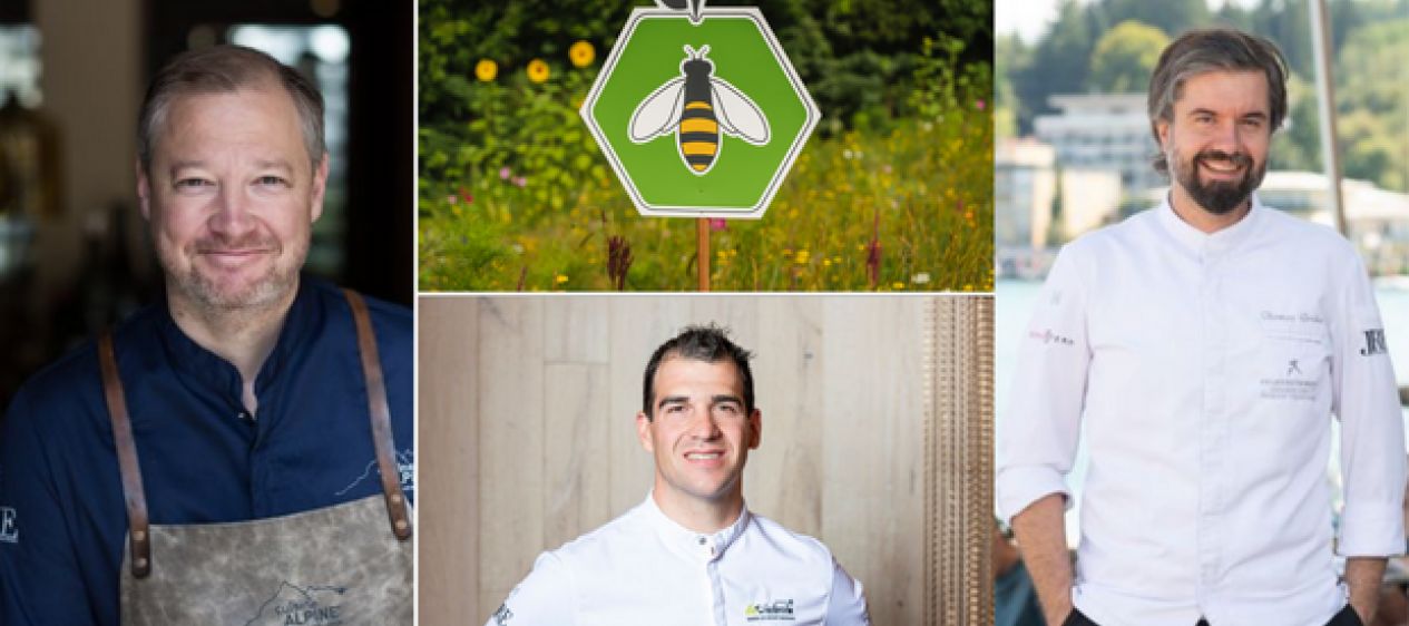 Unter dem Titel „BioBienenApfel meets Haubenküche“ lädt Andreas Döllerer zwei weitere Jeunes-Restaurateurs-Spitzenköche (JRE) ein – Thomas Gruber, Schloss Velden und Andreas Herbst, Riederalm in Loegang - und kocht mit ihnen ein Honig-Apfel-Menü: