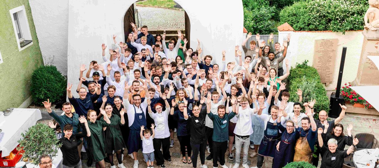 Die Jeunes Restaurateurs Deutschland (JRE) setzen sich gezielt für die Förderung des Nachwuchses in der Gastronomie ein. Neben der JRE Genussakademie und dem azubi:web dient auch der jährliche Azubitag dazu, die Auszubildenden der Restaurants der JRE-Deutschland zu fördern und untereinander zu vernetzen. Dieses Mal fand der besondere JRE Moment am 26. Juni bei Spitzenkoch Christian Fleischmann im Landhotel „Weißes Roß“ in Illschwang statt. Insgesamt 79 Auszubildende nahmen teil.