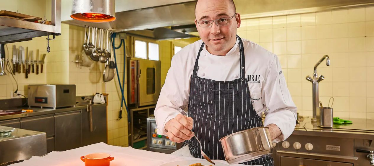 EHRE, WEM EHRE GEBÜHRT! Manuel Reichenbach begeistert seine Gäste im mächtigen Patrizierhaus in Trun GR. Sein Konzept überzeugt: Produkte aus dem Garten oder aus der Region, Kombinationen, die gewagt sind, aber nie gesucht. Der GaultMillau und Partner Mercedes-Benz zeichnen ihn als «Koch des Monats» aus. Was bei ihm auf den Tisch kommt, ist handwerklich perfekt, wird malerisch präsentiert und von seiner tüchtigen Frau Yulia zügig serviert.