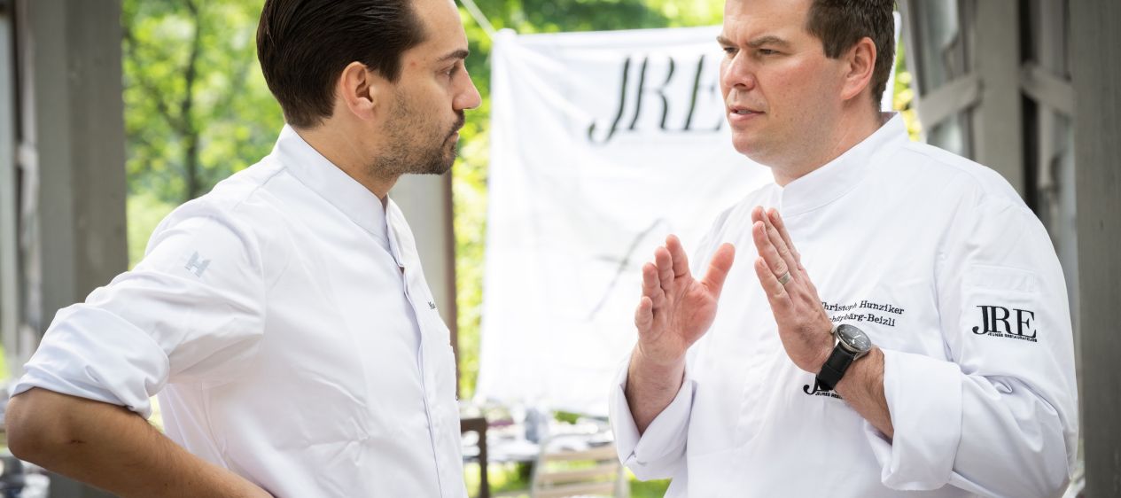 ÄHNLICHE BEDINGUNGEN. Die beiden Chefs haben viel gemeinsam. Sie kochen beide in unglaublich schöner Umgebung, doch etwas «ab vom Schuss». «Das ist wahr, aber was wir hier haben, wird immer mehr gesucht», sagt Manuel Steigmeier. Aber weil die Anzahl Köche in und um Künten überschaubar ist, sucht der 16-Punktechef bei den «Jeunes» Gleichgesinnte. Er ist sogar erst der zweite Aargauer in der Vereinigung. Christoph Hunziker geht es ähnlich. «Bei den JRE sind alles Leute dabei, die vom Gleichen reden. Und man merkt, dass alle ähnliche Probleme haben, egal auf welchem Niveau sie kochen. Man ist nicht alleine.»