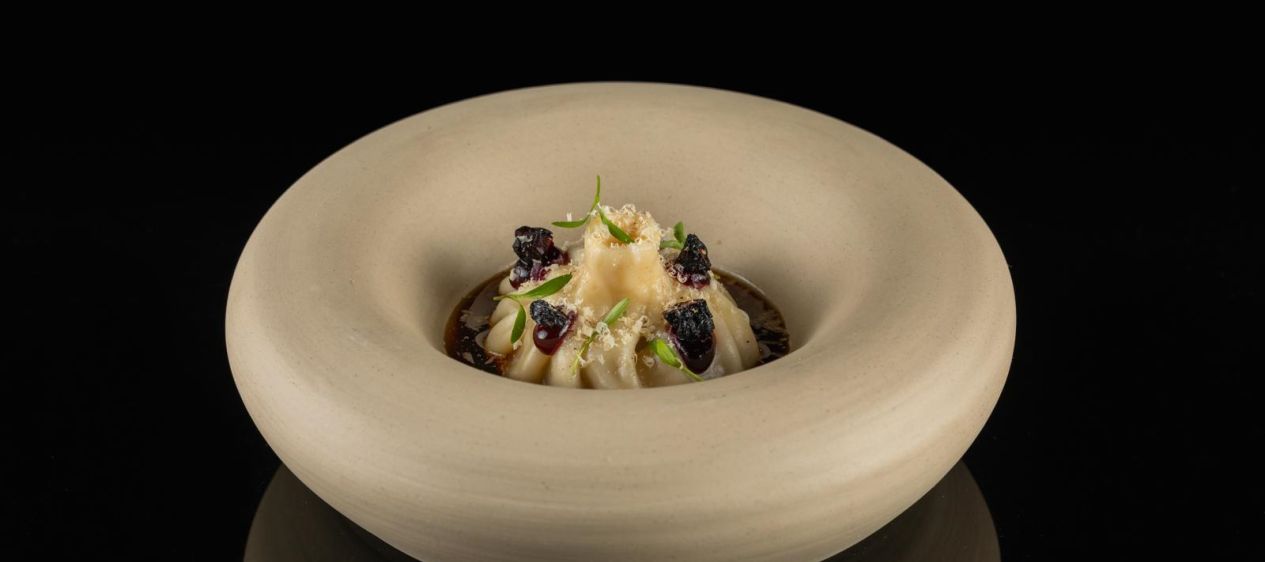 De Schalotten in Butter anschwitzen. Knoblauch und Chili dazu geben und mit anschwitzen und kaltstellen. Anschließend mit dem Fleisch und den restlichen Zutaten vermengen und kaltstellen. Um den Chinkali zu formen, den Teig erst ausrollen, dann rund ausstechen und anschließend befüllen und mit der Butter verfeinern. Dann den Chinkali zu einem Geschenkpacket formen und das Ende der Spitze abschneiden. Bei kochendem, gesalzenem und mit Lorbeer verfeinertem Wasser ca. 8 Minuten kochen.
