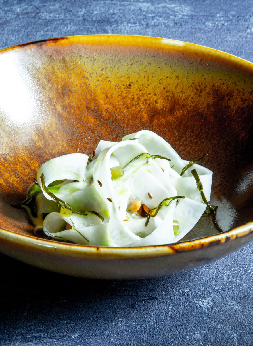 Den Schnittlauch gemeinsam im Mixer auf höchster Stufe für ca.45 Sekunden mixen. Nun das Schnittlauchöl in einem flachen Topf auf hoher Stufe unter ständigem rühren für ca. 60 Sekunden kochen lassen. Sofort das Öl durch ein feines Sieb in eine Schüssel geben, die bestmöglich auf einem Eiswasserbad steht. Somit bleibt die Farbe erhalten.