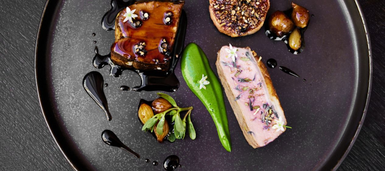 Die Feigen horizontal halbieren und mit etwas Lammjus, Granatapfelmelasse, Salz und Dukkah würzen. Bei 100 °C Oberhitze für ca. 8–10 Minuten im Ofen garen und danach warm stellen.