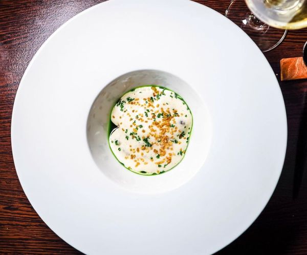 Vanille-Steckrübensuppe mit Hanfcreme und eingelegter Steckrübe