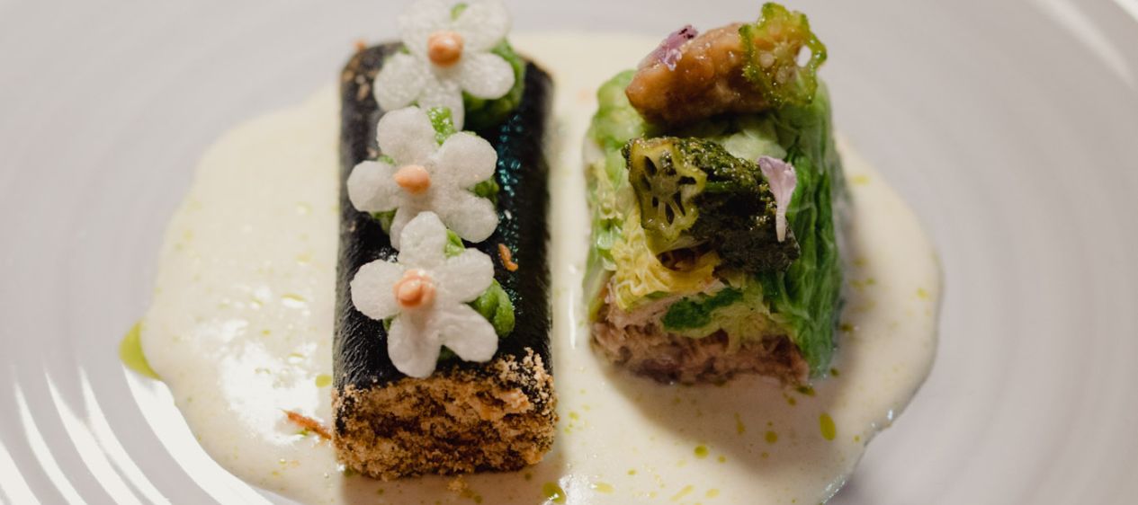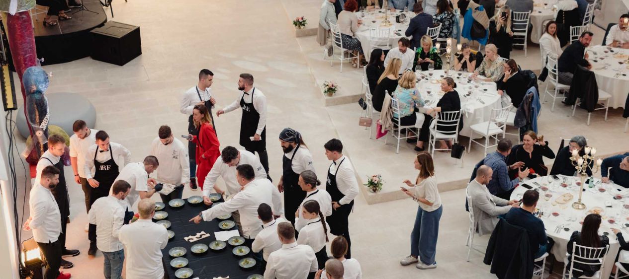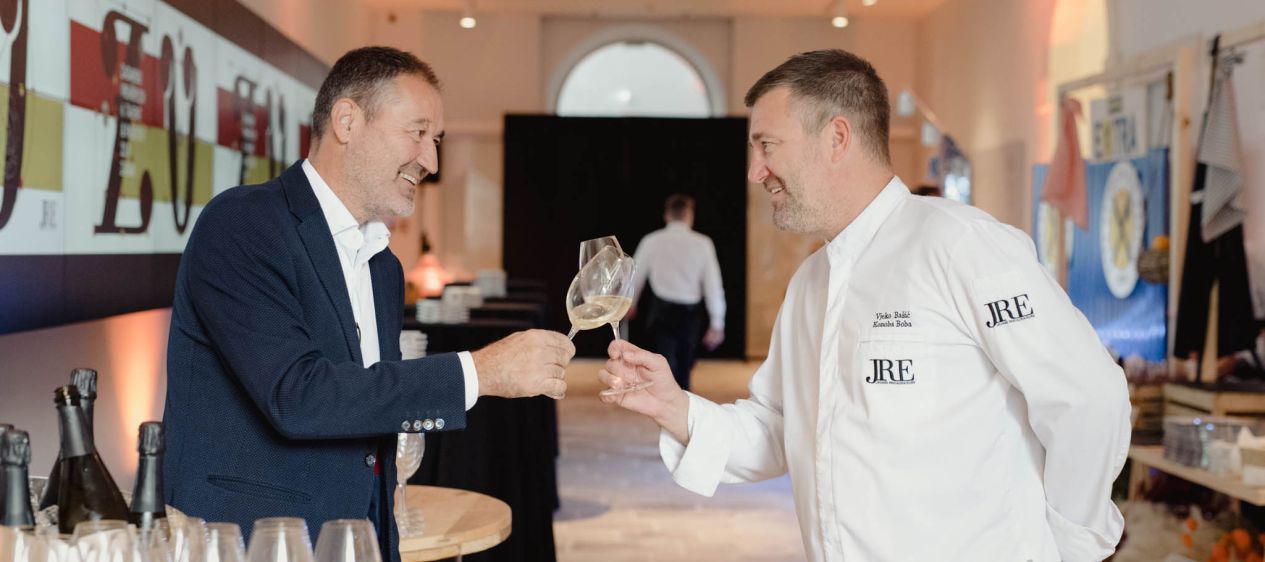 The gala dinner took place in the main atrium of the palace, where we tasted, we believe for the first time, the creations of two chefs on one plate. The dinner consisted of 5 courses and each course was served by 2 restaurants. For each course, the JRE service also served an impeccable wine pairing from 5 different winemakers who are part of the association.