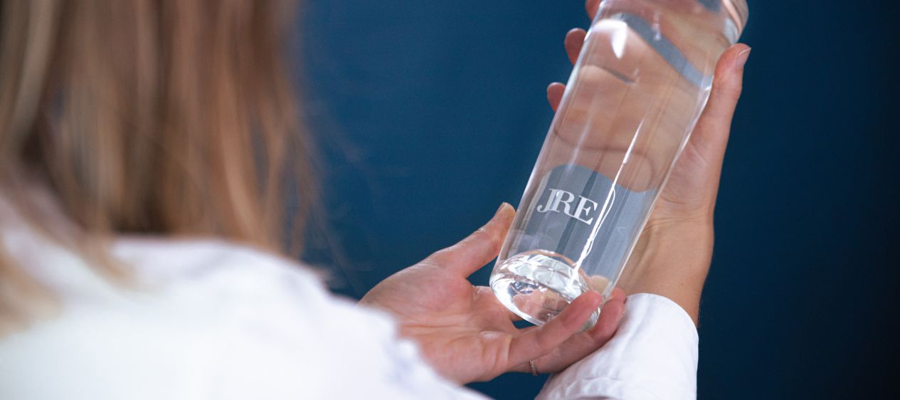 The JRE RE◦ Water carafe is a specially crafted container designed to heighten awareness about the significance of water within JRE restaurants. This prestigious, exquisitely designed, practical, eco-friendly, and sustainable glass packaging respects the precious content it holds.