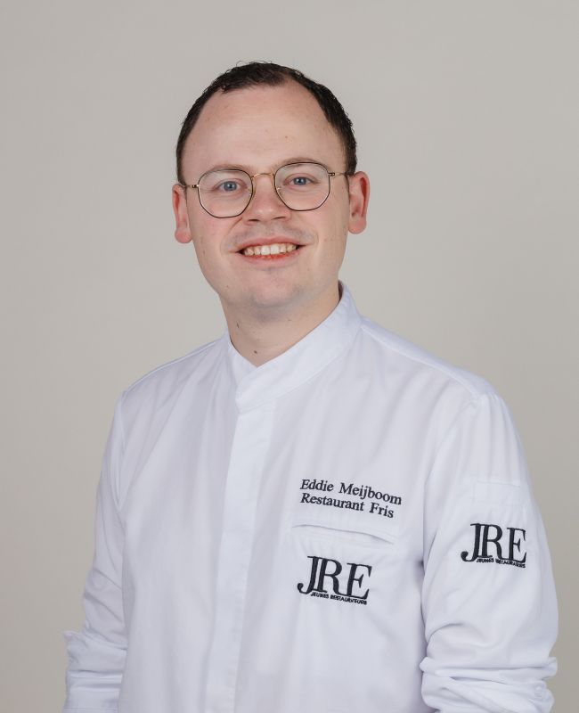Haarlem-born Chef Eddie Meijboom leads the kitchen at Fris with creativity and precision. His philosophy is simple: fewer ingredients, more flavour. Drawing from his experience at Michelin-starred restaurants like Cheval Blanc and La Rive, Eddie crafts dishes rooted in French technique but elevated with Asian and Scandinavian influences. Every plate is a tribute to honest ingredients and bold taste.