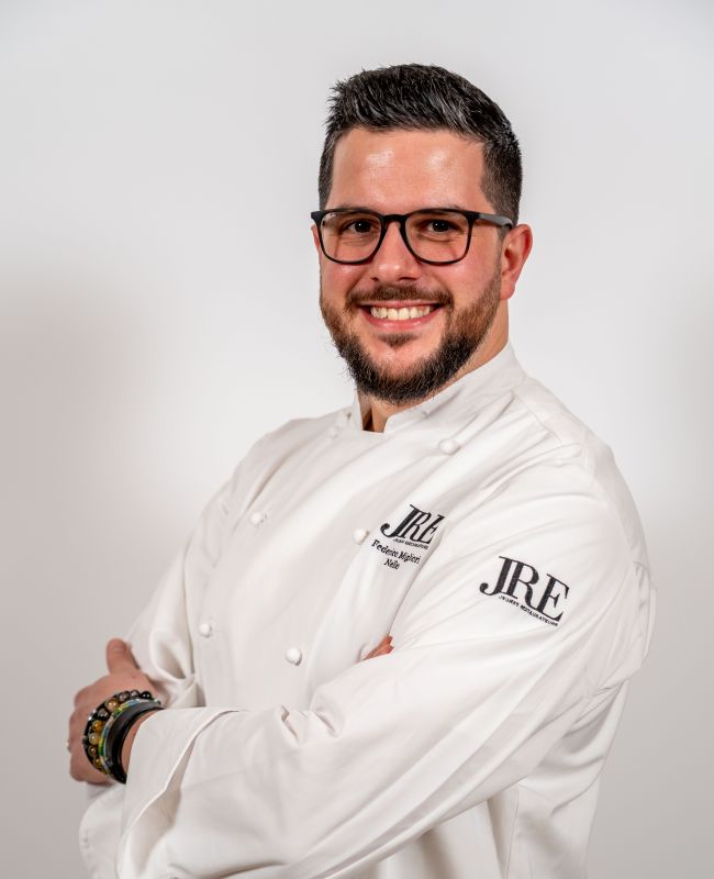 JRE chef Federico Migliori is the chef-owner of Nello in San Casciano in Val di Pesa, which he runs with pastry chef Chiara Zanetti. His cooking is built on few ingredients, chosen for flavour and seasonality, then pushed with precise techniques such as grilling, fermentation and oxidation. He came back to a historic Tuscan restaurant and gave it a new language: recognisable roots, cleaner structure, sharper balance. Migliori’s style is driven by discipline and curiosity, with a focus on making each plate feel complete without excess.