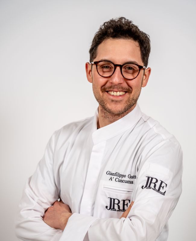 Born in Palermo in 1993, JRE chef Gianfilippo Gatto chose cooking early, guided by family influence and mentor Vincenzo Pinto. His training took him beyond Sicily, with roles in Italy and abroad including Il Cipriani on Giudecca in Venice, Santa Venere in Maratea, and Villa D’Amelia in the Langhe. He returned to Palermo in 2021 and, in 2022, became owner-chef of A’Cuncuma. His work stays close to Sicilian products and their versatility, often giving vegetables a central role, and building tasting menus with clarity and contrast.