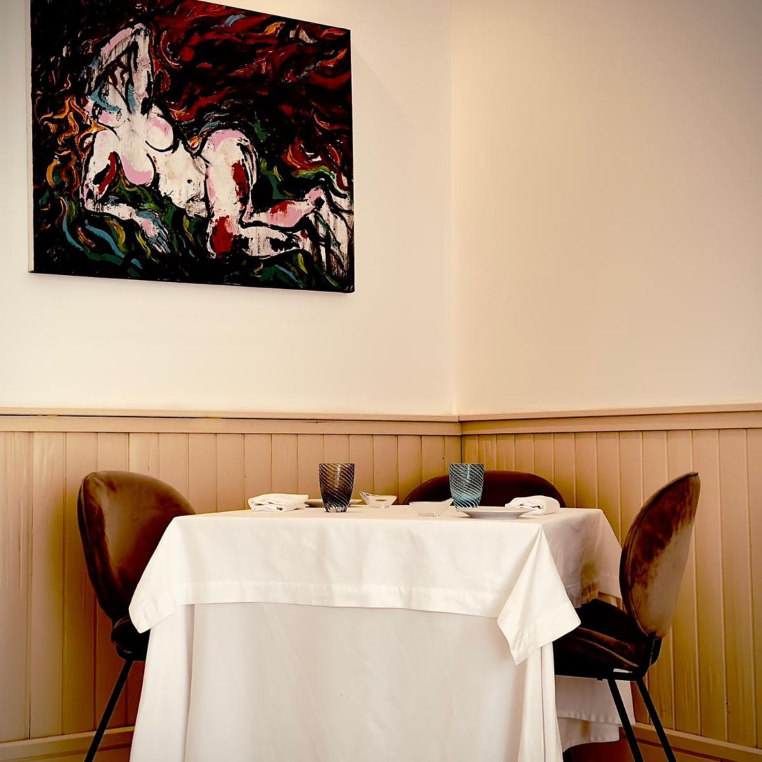 A’Cuncuma restaurant sits in Palermo’s historic centre, a small, intimate address with a calm, well-finished dining room and only a handful of tables. Founded in 2012 and now led by JRE chef Gianfilippo Gatto with maître sommelier Valentina Crescimanni, it brings together hospitality and a clear Sicilian identity. The experience is built around tasting menus inspired by Palermo’s historic city gates, and a wine list that stays strictly Sicilian. Contemporary art by Daniele Favaloro completes the setting, turning the room into a culinary gallery.