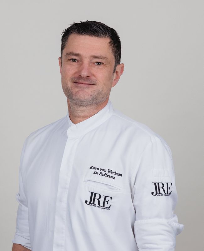 Chef Kars van Wechem’s culinary career starts with a part-time job as a dishwasher at a roadside restaurant. He's promoted to kitchen assistant within two weeks and starts baking pancakes and fried eggs. He enrolls in culinary school and interns at restaurant De Swaen in Oisterwijk. Chefs Nestor Cas Spijkers and Nico Boreas teach him what it means to endure and survive in the kitchen. Kars always aims for the highest standard, especially in his education. As a result, he gets invited to cook in Gordon Ramsay’s kitchen. When he returns to the Netherlands, he joins restaurant De Librije and switches from a militaristic environment to a more casual one. Here, chef Jonnie Boer's cooking style is innovative, playful, and extremely pure. Kars Van Wechem's love for local Dutch products is born here. He and his partner, sommelier Monique Korteschiel, who also works at De Librije, finally decide to go their own way. In 2007, the couple opens restaurant De Saffraan in the heart of Amersfoort.