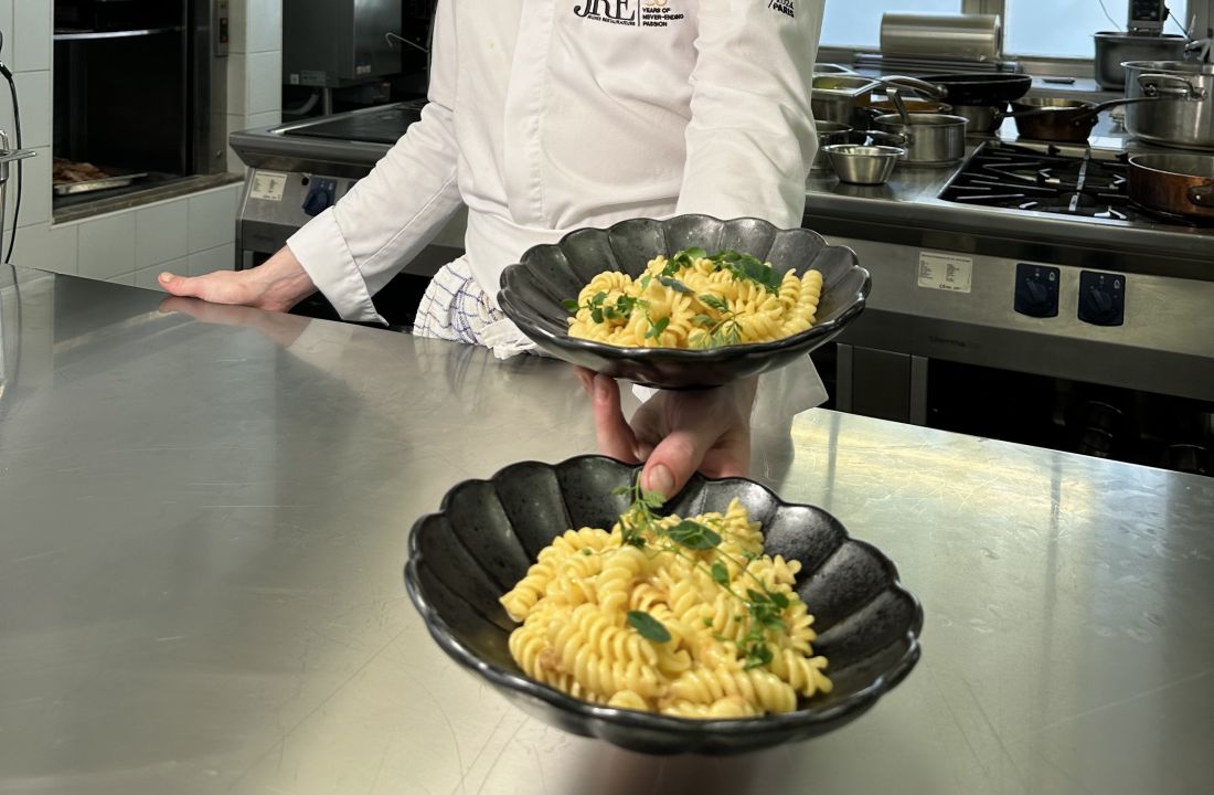 Chef Tomaž Bratovž of JB Restaurant shares a dish close to his heart: Tortiglioni with Pork Cracklings (also called Slovenian Carbonara). Inspired by his grandmother’s traditional recipe, this comforting pasta captures the warmth of home in every bite.