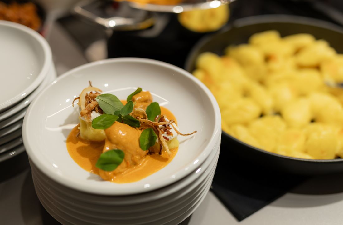 Alongside this, Chef Leon Pintarič of Gostilna Rajh brings the rich traditions of Prekmurje with his Dödöli and Chicken Paprikash. Dödöli, rustic potato and flour dumplings, pair perfectly with slow-cooked chicken paprikash, infused with sweet paprika and tender aromas.