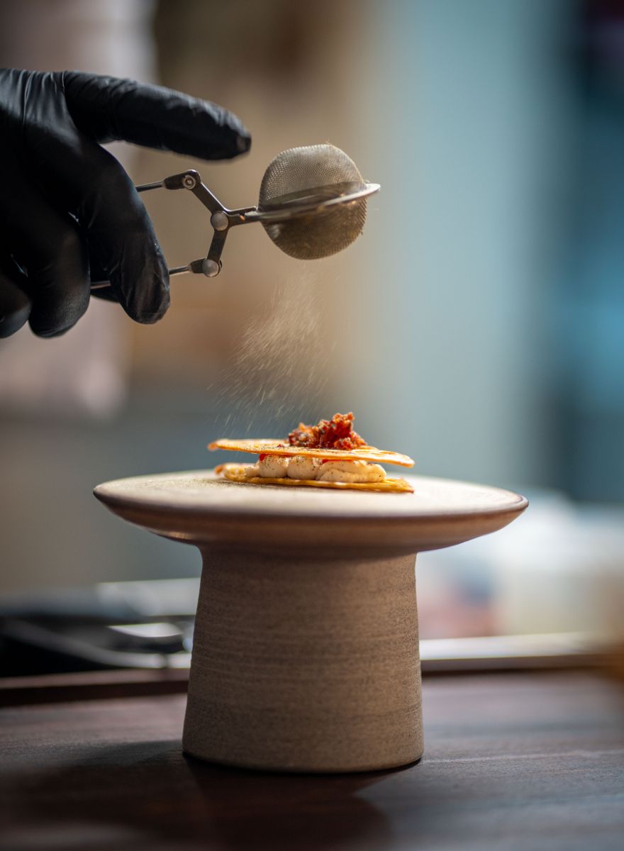 One of my signature dishes here is paprika in sour cream – but not as you know it. We ferment the peppers for 14 days, blend them into a jelly, then infuse the sour cream into it. It’s a play of textures and flavours – it looks like a dessert, but it’s actually a savoury dish with its own unique story. This is why I chose molecular cuisine – because it gives me complete freedom to reshape flavours, play, and surprise guests. To me, that is true cooking – an art form that surprises, challenges, and delights.