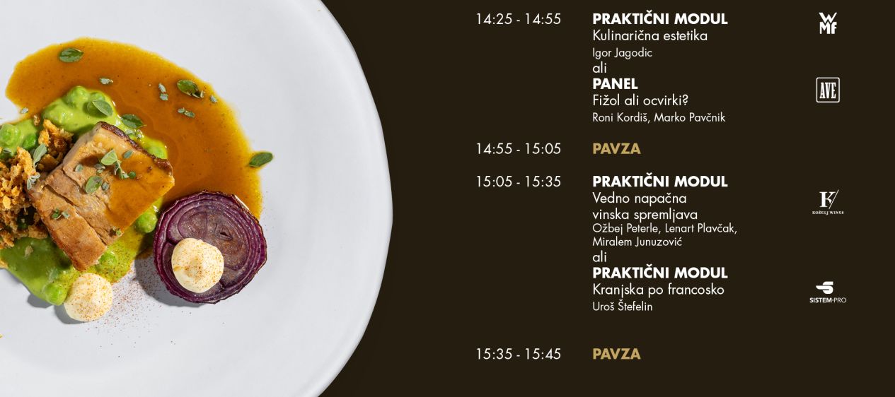 - Izkušeni in priznani predavatelji, ki vam bodo razširili obzorja - Družba gostincev, ki verjame v moč znanja - Vrhunska kulinarika in nepozabni afterparty