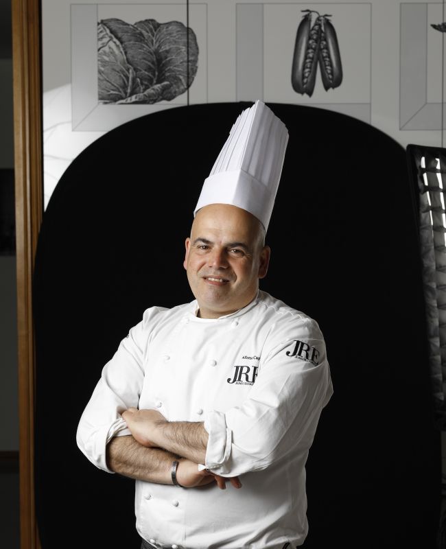 En Taverna del Capitano en Marina del Cantone, el chef JRE Alfonso Caputo cocina con el mar como guía. Nombrado en honor a su abuelo, creció entre la cocina de su madre Grazia y las barcas de los pescadores. Se formó con Gualtiero Marchesi y viajó desde Francia hasta Japón. Se unió a JRE en 1993 y obtuvo su estrella Michelin a los 26 años. Dos pescadores locales pescan exclusivamente para él, por lo que el menú cambia según la captura. Caputo utiliza el pescado entero, de la cabeza a la cola, para mantener los sabores y reducir el desperdicio. Cocina siempre fresco, sin rutina, dejando que el producto del día marque el plato.