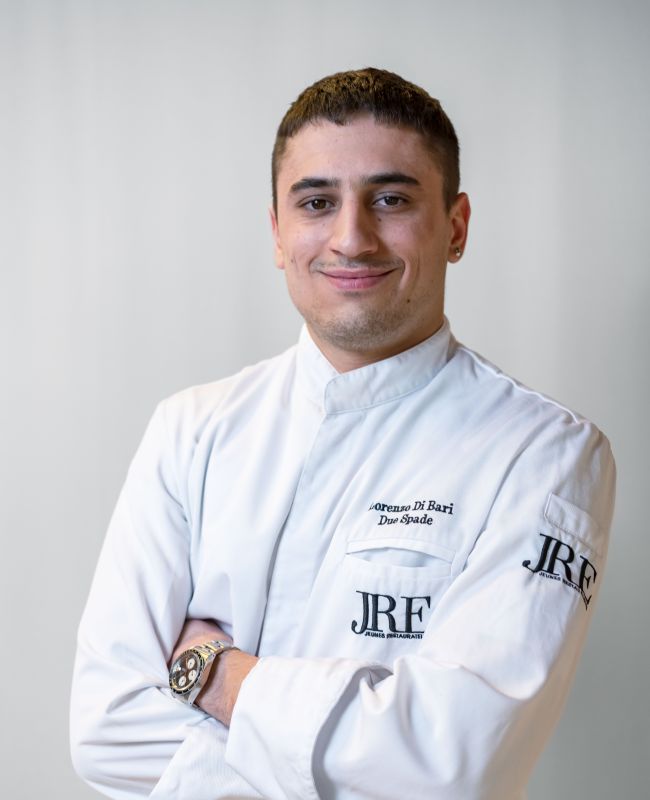 Lorenzo Di Bari dirige su restaurante con gente joven a su lado, trabajando juntos como un equipo para el éxito de cada uno. Y estos valores los puedes saborear sentado en una de nuestras mesas, degustando nuestras propuestas. Lorenzo Di Bari tomó el relevo en la cocina del restaurante de su familia, Due Spade, tras el fallecimiento de su padre, que abrió el restaurante hace más de 35 años. Nacido y criado en la cocina, la pasión de Lorenzo por la comida es evidente en la forma en que se desliza por su espacio de trabajo con gracia y facilidad. Cuando no está girando una pelota de baloncesto, su otra pasión, Lorenzo está cortando, rellenando y preparando clásicos locales que han pasado por su familia a lo largo de los años. Cree que un equipo es tan fuerte como cada uno de sus miembros, así que su equipo de cinco personas en la cocina se ha convertido en parte de la familia. Habiendo aprendido su oficio al lado de su padre, ha inyectado su propio estilo y personalidad en muchos de los platos que crea y que ahora se han convertido en los favoritos de los clientes habituales y de los visitantes.