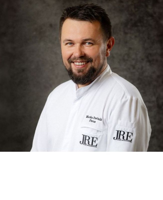 Nacido en 1980, el chef Marko Pavnik goza de una envidiable reputación como experto culinario esloveno. Es un chef autodidacta que representa uno de los más prominentes creadores de la cocina eslovena moderna. Ha ganado numerosas medallas de oro y plata en los concursos de la Asociación de Hospitalidad y Turismo de Eslovenia en reconocimiento a su creatividad y éxito. Cuando el chef Marko Pavčnik crea nuevos platos, prefiere utilizar la cerveza local de Laško y hierbas silvestres. El chef anima a sus comensales a superar sus prejuicios, costumbres y estereotipos, y a estar abiertos a una nueva experiencia. Utilizando ingredientes locales, tradicionales y a veces "salvajes", crea platos elegantes pero eficientes. Los platos tienen sabores vibrantes y están bien equilibrados. El estilo de cocina del chef Marko Pavčnik es auténticamente suyo. Sabe como jugar, crear e impresionar. Es un perfeccionista capaz de dominar las técnicas modernas y al mismo tiempo maximizar su uso. Sabe que es importante dejar que los ingredientes hablen por sí mismos en cada plato.