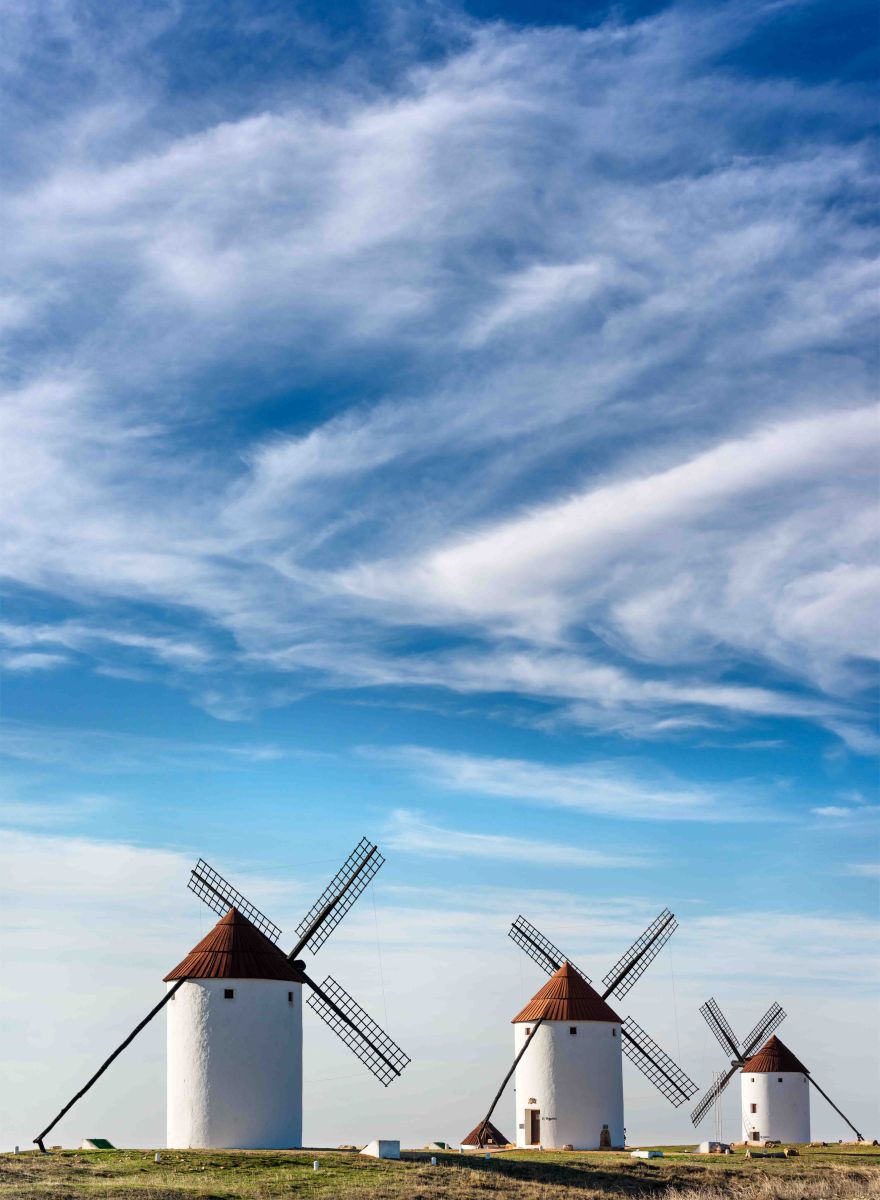 Castilla-La Mancha se encuentra en el corazón de la península ibérica, donde extensas llanuras se pierden en el horizonte y los molinos de viento se alzan sobre el paisaje que inspiró el Don Quijote de Cervantes. Viñedos, olivares y fincas históricas configuran una región en la que la tradición y la vida rural siguen profundamente ligadas a la tierra.