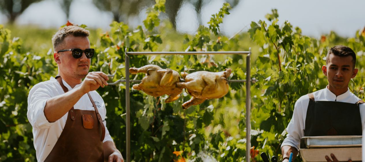 Todos los chefs y sumilleres visitaron los viñedos de Torre de Oña. Después del recorrido, los chefs comenzaron a improvisar y los sumilleres comenzaron una cata de vinos.