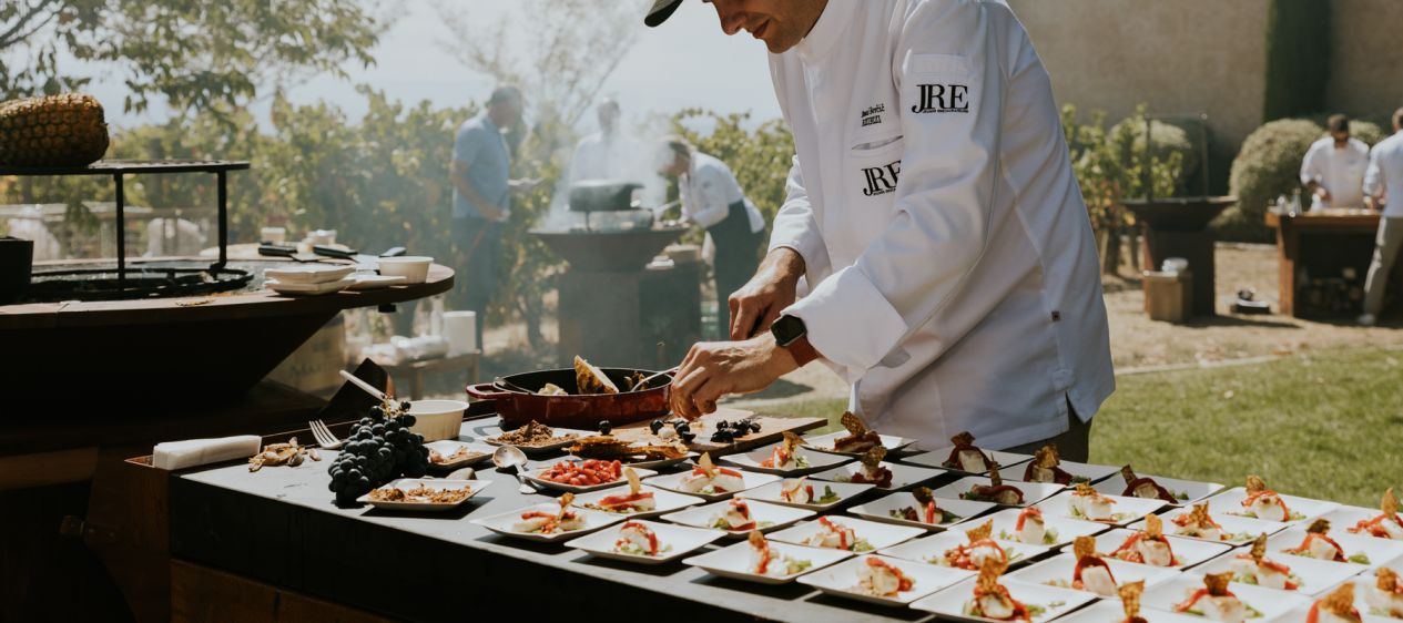 La idea de Jam Sessions es simple e innovadora. 8 Chefs JRE Internacionales se dieron cita en la bodega de Torre de Oña para cocinar en el exterior sin electricidad. Asi que le pedimos a Ofyr que creara una cocina al aire libre, usando unas barbacoas maravillosas de leña. Se explico a los los chefs que debian cocinar con productos, ingredientes y condimentos que había en la “caja misteriosa”. Aceite de Oliva Priego Córdoba, alubias regionales de Alubia De Anguiano, lubina de Aquanaria, azafrán de Azafrán de la Mancha, Alcachofas de Caprichos del Paladar, carne del Consejo Regulador carnes de Ávila, micro hojas de Koppert Cress, ajo negro de JR Suárez y Spain is Excellence, harina de Molinos del Duero, setas de Herchamp, verduras biológicas de La huerta de Rizos, chocolate de Original Beans y agua de manantial de Vichy Catalán-PMG. Todos los platos de autor fueron presentados en platos de diseño por el ceramista Tono Naharro.