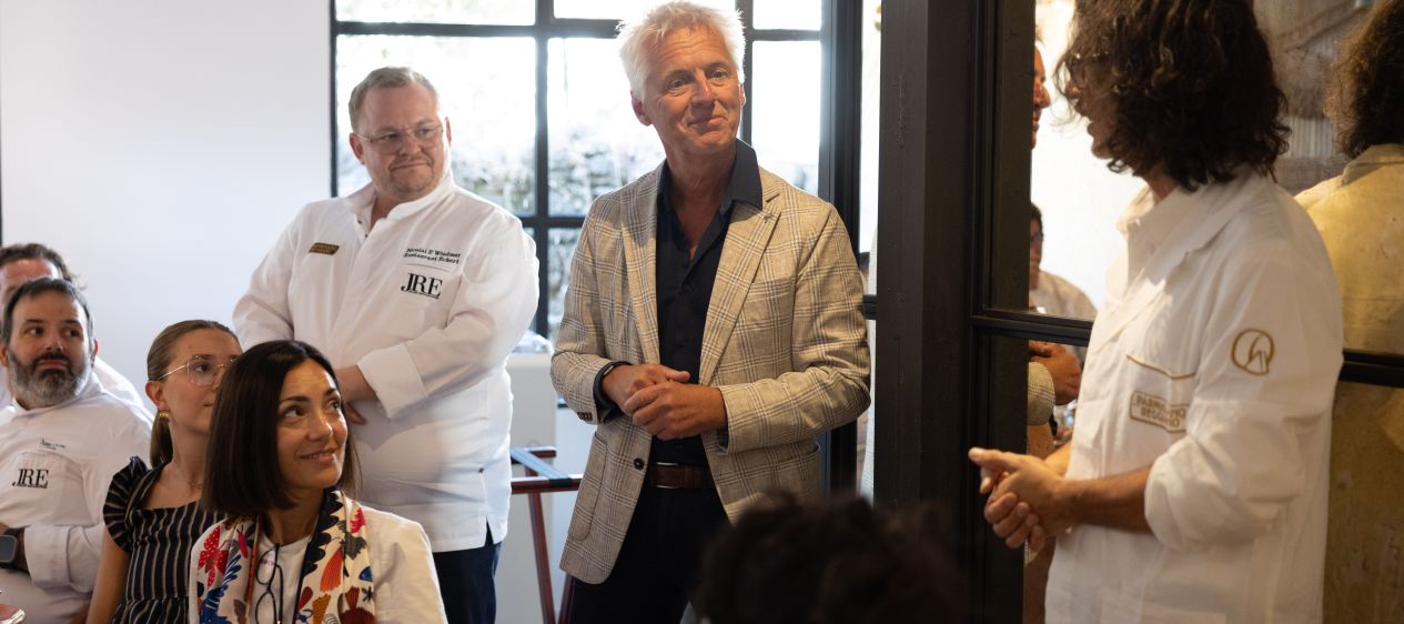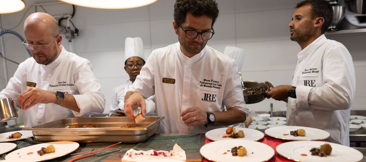 Para celebrar la ocasión, nueve chefs de JRE-International crearon recetas exclusivas con Parmigiano Reggiano, que estarán disponibles en los menús de sus restaurantes por tiempo limitado. Estas creaciones fueron presentadas durante el evento, y tres de ellas fueron elaboradas en directo por los chefs Manuel Franco, Borja Marrero Vázquez y Seve Díaz. Sus demostraciones contaron con la asistencia de miembros de JRE-España, de la Junta Directiva de JRE-International Nicolai P. Wiedmer (Vicepresidente) y Hans van Manen (CEO), representantes de Parmigiano Reggiano y de Carpigiani, el alcalde de Valdemorillo y medios de comunicación.