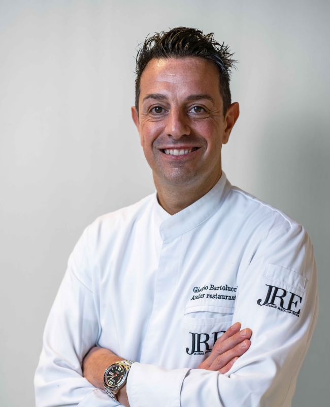 Giorgio Bartolucci est le talentueux chef-propriétaire du restaurant Atelier, qui se trouve à l'intérieur de l'hôtel Eurossola. La cuisine de Giorgio est un royaume de la création culinaire. Il y exprime ses liens profonds avec le territoire et son empreinte gastronomique traditionnelle, uniquement italienne. Giorgio aime apprendre, comprendre, comparer et étonner. Il est toujours curieux. Tradition et innovation sont intégrées dans la conception de la cuisine du chef. Son utilisation habile des produits de saison et sa recherche constante de nouvelles inspirations sont les outils qui le guident dans la création d'une cuisine régionale raffinée - pour le plaisir des yeux et du palais.