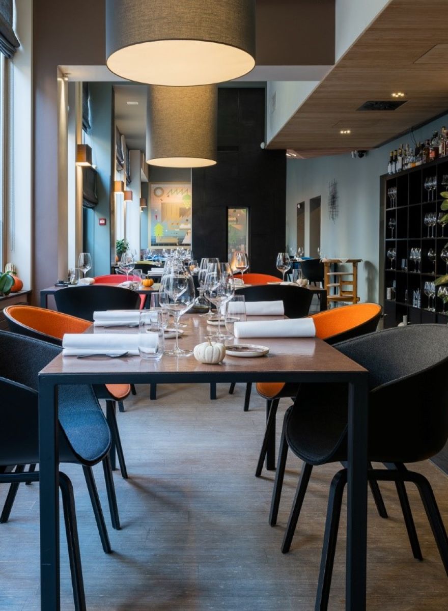 Les plats du moment confirment ce savoir-faire lumineux : Tourteau, mayonnaise au lait, céleri, carotte, couteau, kiwi et huile carbone ; Pêche du jour, mousseline de patate douce, salicornes, beurre blanc à l’huile verte et sarrasin torréfié ; Agnolottis aux cèpes, ricotta et sauce au foie gras ; Bœuf braisé, fond d’artichaut grillé, homard et jus de viande réduit ; ou encore Suprême de pintade rôti à la feuille de figuier, figue au romarin et purée d’oignons rouges confits. Et pour conclure, un Dessert tout chocolat, simple, pur et irrésistible.