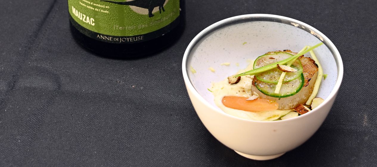 Servi avec : Anne Joyeuse « Rhabdodon priscus » blanc – IGP Pays d’Oc