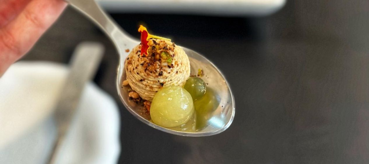Un menu sans faute , avec de belles suggestions comme j’aime avec du sucré/salé. Je n’aime pas les champignons mais travaillé de cette façon en version chaude c’était agréable en bouche. Coup de cœur pour les mises en bouche ( Mousse de foie gras/ Pomme, mise en bouche signature la praline de boudin , la gaufre salée autour de l’olive et la fêta et comme une soupe à l’oignon) . Le plat de bœuf était incroyable une cuisson à la perfection accompagné d’un verre de vin rouge qui s’associer parfaitement.
