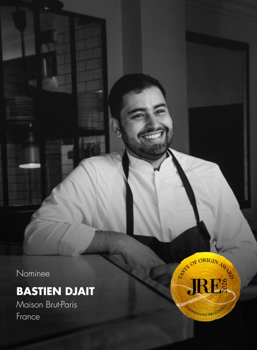 Depuis plus de 50 ans, JRE s'engage à perpétuer la tradition. Réunissant un véritable vivier de talents. Au nom de nos pairs et de leur art issu d'un savoir-faire ancestral, nous rendons aujourd'hui hommage au chef qui se consacre à la transmission des compétences et des connaissances. Ce chef lauréat célèbre la tradition en utilisant le passé comme une source d'inspiration inépuisable pour créer une cuisine classique exceptionnelle. En collaboration avec Parmigiano Reggiano, nous rendons hommage au chef qui préserve le passé et célèbre l'avenir.
