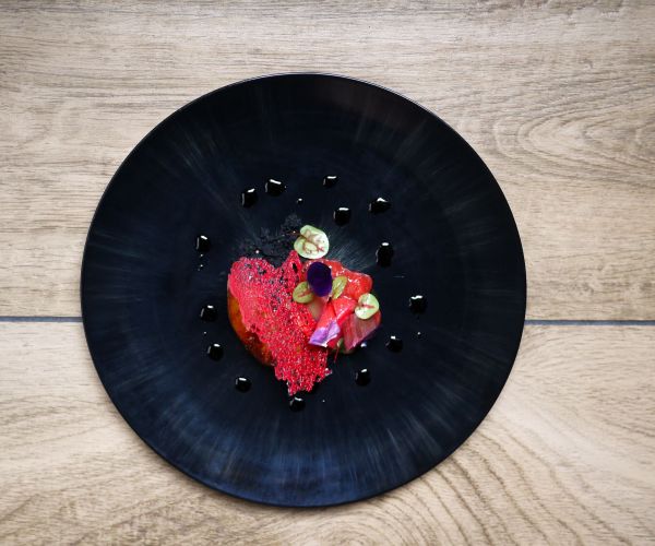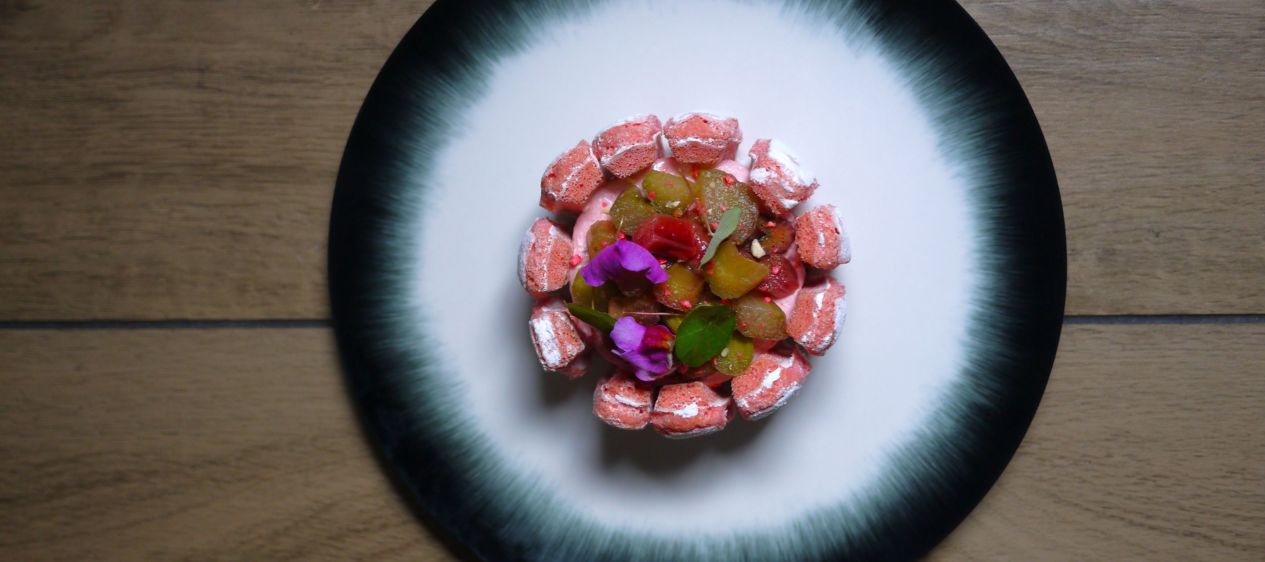 Mélanger le fromage blanc et la mascarpone avec le coulis de rhubarbe, le sirop d’hibiscus et faire fondre les feuilles de gélatine et les incorporer à la masse. Couler l’appareil dans des moules. Les remplir à moitié, puis ajouter la marmelade au milieu et finir de remplir le moule avec l’appareil restant. Et réserver au frais..