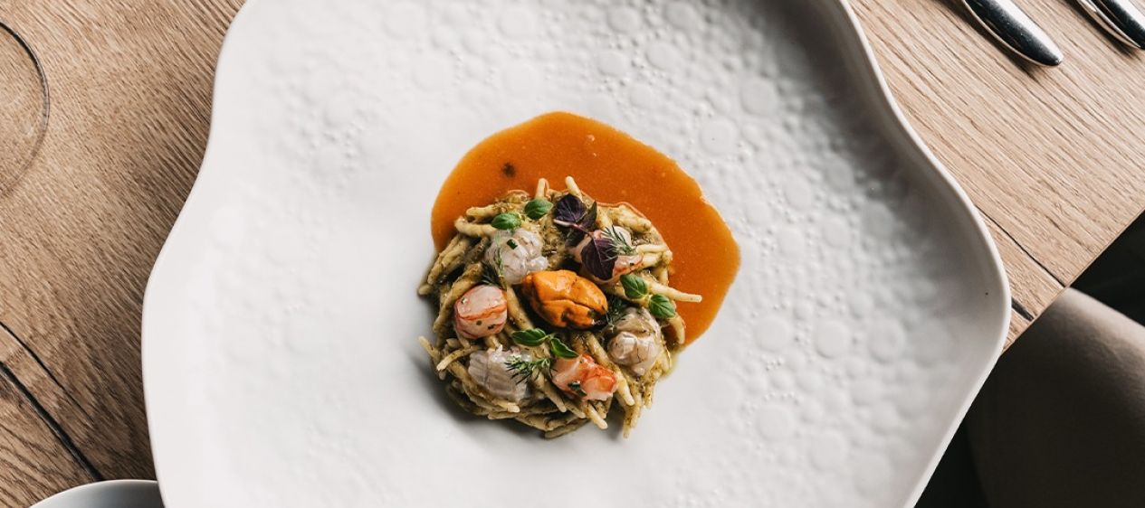 Vibrant, aromatique et profondément sicilien. Ce plat célèbre la richesse de l’île, entre mer et terre : le fenouil sauvage évoque les paysages méditerranéens, tandis que le gambero rosso de Mazara, la cigale de mer et les moules méditerranéennes capturent l’essence de la mer. Une véritable alliance entre tradition et créativité, offrant un authentique voyage au cœur de l’âme culinaire sicilienne. Cette recette fait partie du projet Pasta e Basta! de Pastificio dei Campi et JRE-Jeunes Restaurateurs.