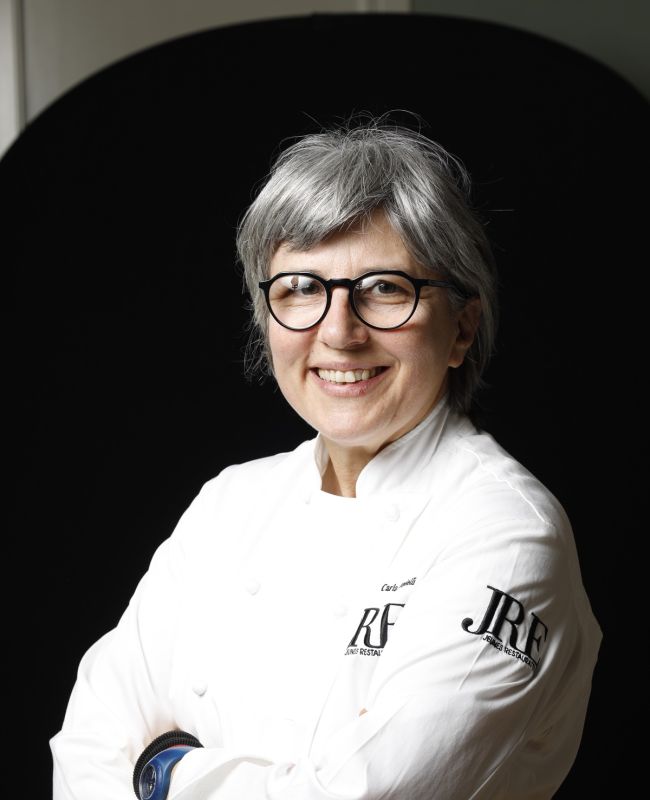 Carla Aradelli (classe 1968) ha iniziato a cucinare presto nella locanda di famiglia a Montesanto, sulle colline di Ponte dell’Olio, con un legame forte con la vita contadina dei nonni. Un passaggio decisivo sono stati i due anni di formazione con Georges Cogny alla Locanda Cantoniera, dove ha affinato la tecnica e ampliato la sua idea di gastronomia. A 19 anni ha iniziato a costruire quello che sarebbe diventato Riva, e nel 1997 ha conquistato la stella Michelin. La sua cucina resta volutamente semplice, leggera ed equilibrata, con tutto fatto in casa e ingredienti lavorati nella loro interezza per conoscerne davvero l’origine.