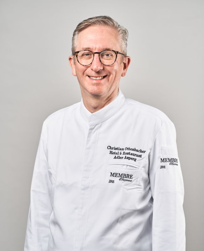 Dopo aver lavorato nei migliori ristoranti di Basilea e Vienna, l'ex chef Christian Ottenbacher è approdato in alcuni dei migliori ristoranti di Barcellona, New Orleans e Cleveland. Insieme a sua moglie Dory, ha poi rilevato l'hotel e il ristorante Adler Asper, diventando così la quarta generazione a dirigere questo edificio a conduzione familiare. Come chef dell'Adler Asperg, Christian Ottenbacher ha creato la sua rinomata cucina: un mix di specialità sveve e tapas spagnole. Come risultato, i suoi piatti regionali collaudati con un tocco moderno e internazionale sono stati premiati con una stella Michelin. Anche se il proprietario e direttore dell'hotel Christan non lavora più come chef in cucina, ha ancora il fiuto per il buon cibo e il talento in cucina. E questo si vede, visto che i ristoranti e la brasserie dell'hotel sono ancora molto amati tra gli intenditori culinari.