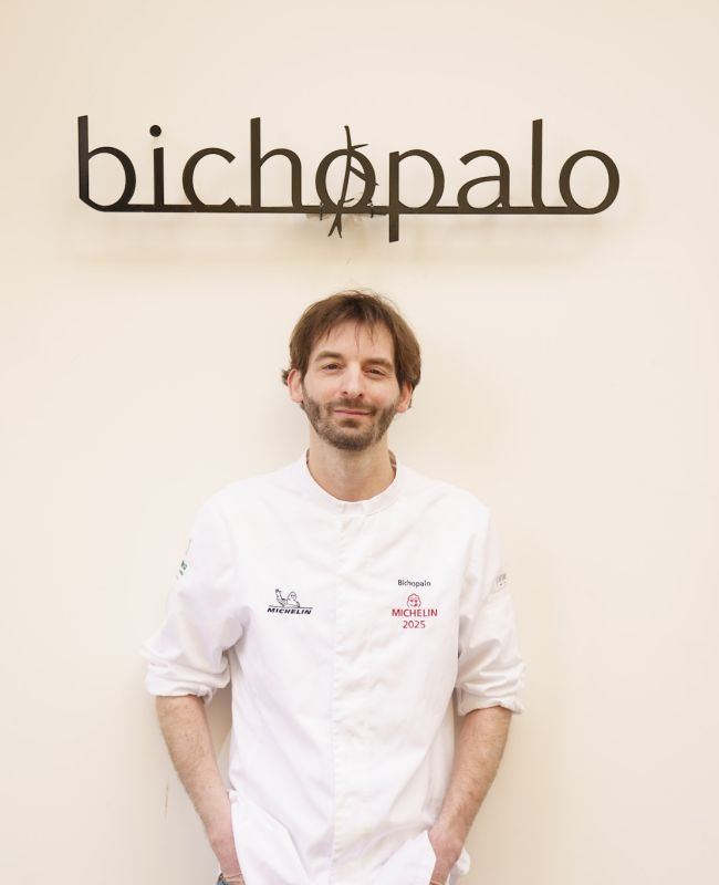 Daniel Pozuelo Calvet è nato a Madrid nel 1988 ed è cresciuto sulle montagne di Collado Villalba, dove la cucina di sua nonna è stata il suo primo modello di pazienza e gusto. Si è formato quasi per caso, poi non si è mai guardato indietro, affinando la sua arte in locali come Paco Roncero Restaurante, Alboroque, Arzak e DStage. I viaggi stimolano le sue idee e Bichopalo gli dà la libertà di metterle in pratica rapidamente: un menu che può cambiare ogni pochi giorni, guidato dal mercato e dall'istinto.
