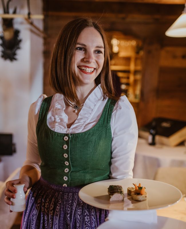 Al Geiger Alm, Eva Utassy si assicura che ogni dettaglio dell'esperienza culinaria sia impeccabile, piacevole e profondamente personale. In qualità di sommelier e direttrice del ristorante, cura un'eccezionale selezione di vini per accompagnare le creazioni stellate del marito, lo chef Dominik Utassy. La sua profonda conoscenza e il suo intuito nell'abbinamento esaltano ogni piatto, creando un'armonia di sapori che perdura oltre il pasto. Riconosciuta con il Gault Millau Service Award nel 2024, Eva non è conosciuta solo per la sua competenza, ma anche per la sua genuina ospitalità, che trasforma ogni visita al Geiger Alm in un'esperienza indimenticabile.