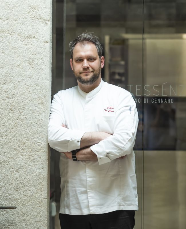Dopo aver allacciato il grembiule in un laboratorio di pasticceria all'età di 11 anni, lo chef Stefano Di Gennaro si è diplomato all'Istituto Hotellerie di Molfetta nel 2004. Stefano ha avuto una lunga carriera nella ristorazione, trascorrendo molti anni in varie cucine in tutto il paese. Lo chef Stefano non ha mai perso il suo innato senso di umiltà, nonostante il fatto che la sua cucina sia stata riconosciuta come una delle migliori del Sud Italia. È stato persino premiato con una prestigiosa stella Michelin per le sue eccezionali capacità culinarie. Un sogno è diventato realtà per Stefano quando ha aperto Quintessenza Ristorante, un nuovo inizio dove i migliori ingredienti vengono preparati nel modo più rispettoso.