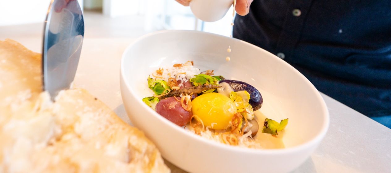 Lo chef Joseff Steffner del ristorante Mesnerhaus in Austria ha condiviso con noi una delle sue ricette preferite in modo che tu possa ricreare questo piatto squisito. In questa ricetta ti mostra come combinare il beurre noisette con patate miste e cavoletti di Bruxelles insieme all'autentico Parmigiano Reggiano italiano, per creare un piatto sostanzioso che sicuramente soddisferà a pieno le tue papille gustative.