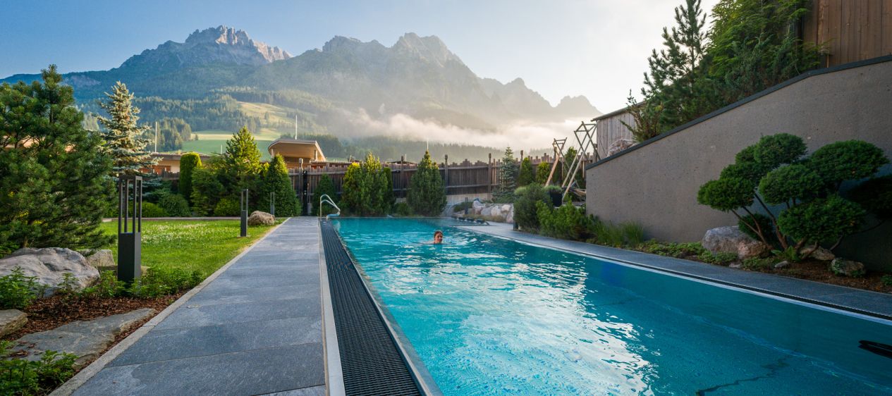 “Good Life” e delizie culinarie al ristorante gourmet “dahoam” (a casa). L'hotel a 4 stelle superior a conduzione familiare Good Life Resort Riederalm, situato nel centro di una delle regioni sportive più emozionanti dell'Austria, promette una “Good Life”. Il nome dice tutto, e non solo per la vista sulle montagne di Leogang con il suggestivo Birnhorn: anche lo chef e patron Andreas Herbst è molto “dahoam” nella sua cucina, che offre ai produttori della regione un palcoscenico a tutti gli effetti. I piatti contemporanei esaltano i prodotti stagionali con creatività e cura.