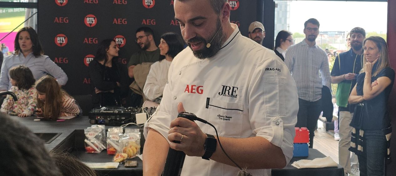 La cucina è stata quindi il canale non solo per regalare sensazioni gustative con i piatti realizzati proprio davanti al pubblico presente, ma anche per raccontare e mostrare le peculiarità degli elettrodomestici AEG.