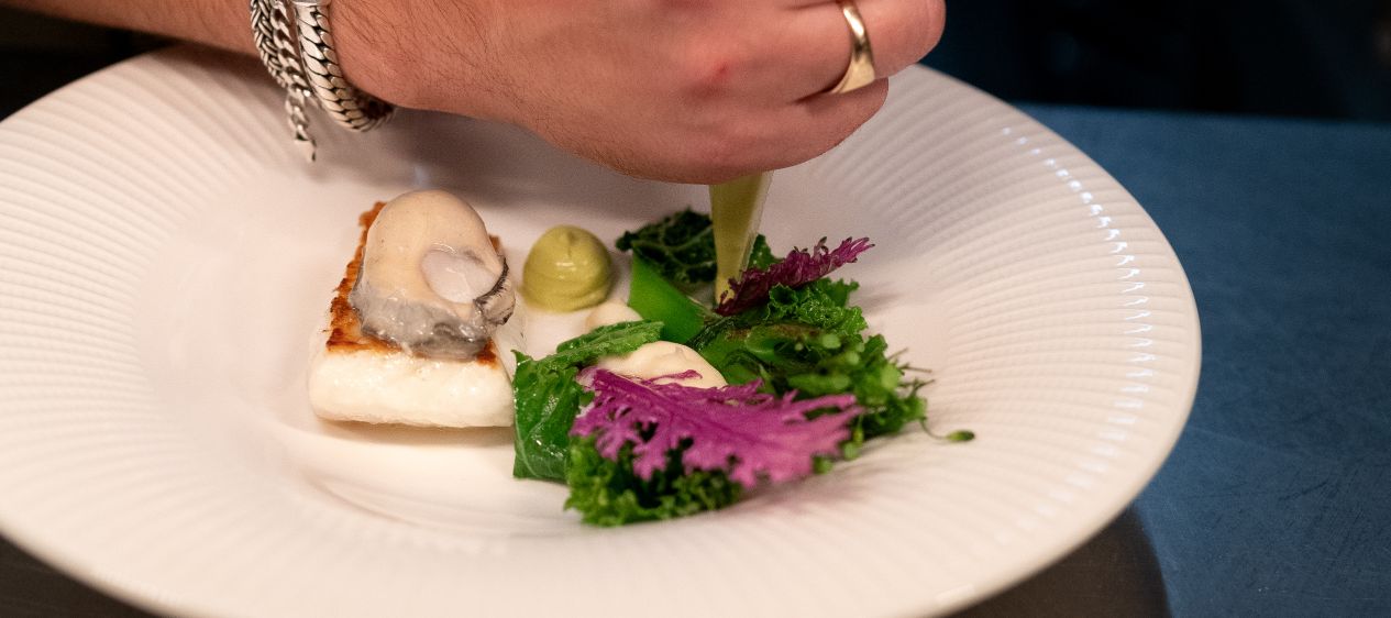 Bij restaurant Spetters bepalen de Noordzeekust en het achterland het menu: scheermessen, Noordzeekrab, mosselen en wieren zijn zomaar een paar ingrediënten die je terugvindt op de kaart. In de haven van het Zeeuwse Breskens begon chef Laurent Smallegange dertien jaar geleden zijn restaurant. Zo’n drie jaar later werd hij na een ballotageronde gevraagd om lid te worden van de JRE: ‘Natuurlijk wilde ik dat. Ik ben echt een clubmens, en de JRE heeft veel te bieden. We steunen elkaar in goede en slechte tijden. En we inspireren elkaar.’ Bij Spetters laat Smallegange zich inspireren door de culinaire pareltjes uit de regio. Voor de smaakmakers kijkt hij juist weer ver de grens over. Zo geeft hij zijn Zeeuwse ingrediënten graag een Spaanse, Marokkaanse, Japanse of Peruaanse draai. De wijnen bij Spetters komen als het even kan uit de Franse Elzas. ‘Mijn favoriete wijnstreek. Prachtige, frisse wijnen met een lekker doordrinkbare stijl maken ze daar.’