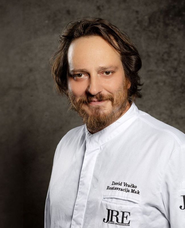 Chef David Vračko is een nogal ongewone chef. Door zijn uiterlijk zou je eerder denken dat hij rockmuzikant is dan culinair kunstenaar. Toch creëert hij met zijn handen culinaire kunst die niet alleen oogstrelend is, maar ook buitengewoon goed van smaak. Daarom heeft Gault Millau Slovenië David Vracko uitgeroepen tot "Chef van de Toekomst".