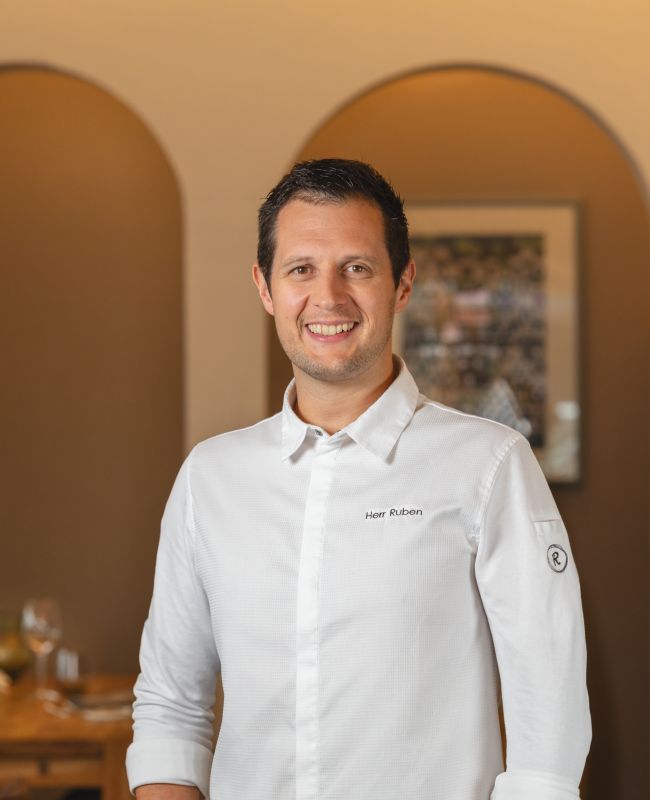 Half Noord-Duits, half Oostenrijks: Ruben Baumgart brengt zowel precisie als warmte in zijn keuken. Zijn kookstijl getuigt van diep respect voor klassieke Oostenrijkse recepten, gecombineerd met de lichtheid en balans van de moderne keuken. Voor hem draait het niet om opsmuk, maar om smaak; niet om trends, maar om techniek. Hij gelooft dat goed koken begint bij het volledig benutten van elk ingrediënt. Onder zijn leiding staat Rubens bekend om gerechten die verfijnd en oprecht aanvoelen.