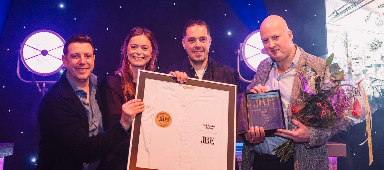 Venray, dinsdag 14 november 2023 – Yornie van Dijk van Restaurant Basiliek in Harderwijk is maandag 13 november tijdens het Eindejaarsdiner bij De Beejekurf door restaurantvereniging JRE-Nederland uitgeroepen tot Chef van het Jaar 2024. De award werd uitgereikt door Tijn Swinkels van Swinkels Family Brewers. Liset Bom, eigenaresse van Restaurant Cèpes in Hotel de Sterrenberg in Otterlo mag zich Gastvrouw van het Jaar 2024 noemen. Ze ontving de award van Martijn Kwast van Kwast Wijnkopers. De award voor Restaurant van het Jaar 2024 ging naar Ledeboer van Rick Blanken in Almelo. Hij mocht de award in ontvangst nemen van Michelle Hartman van illycaffè.