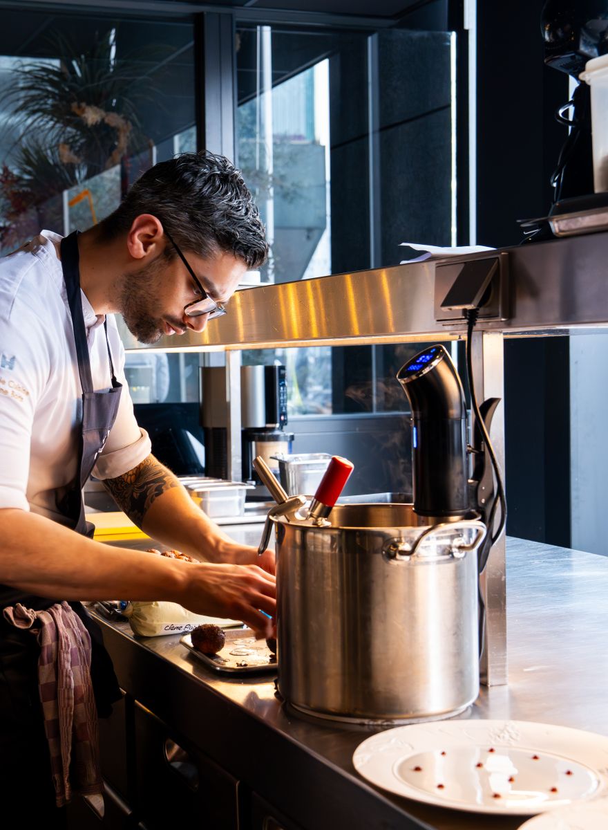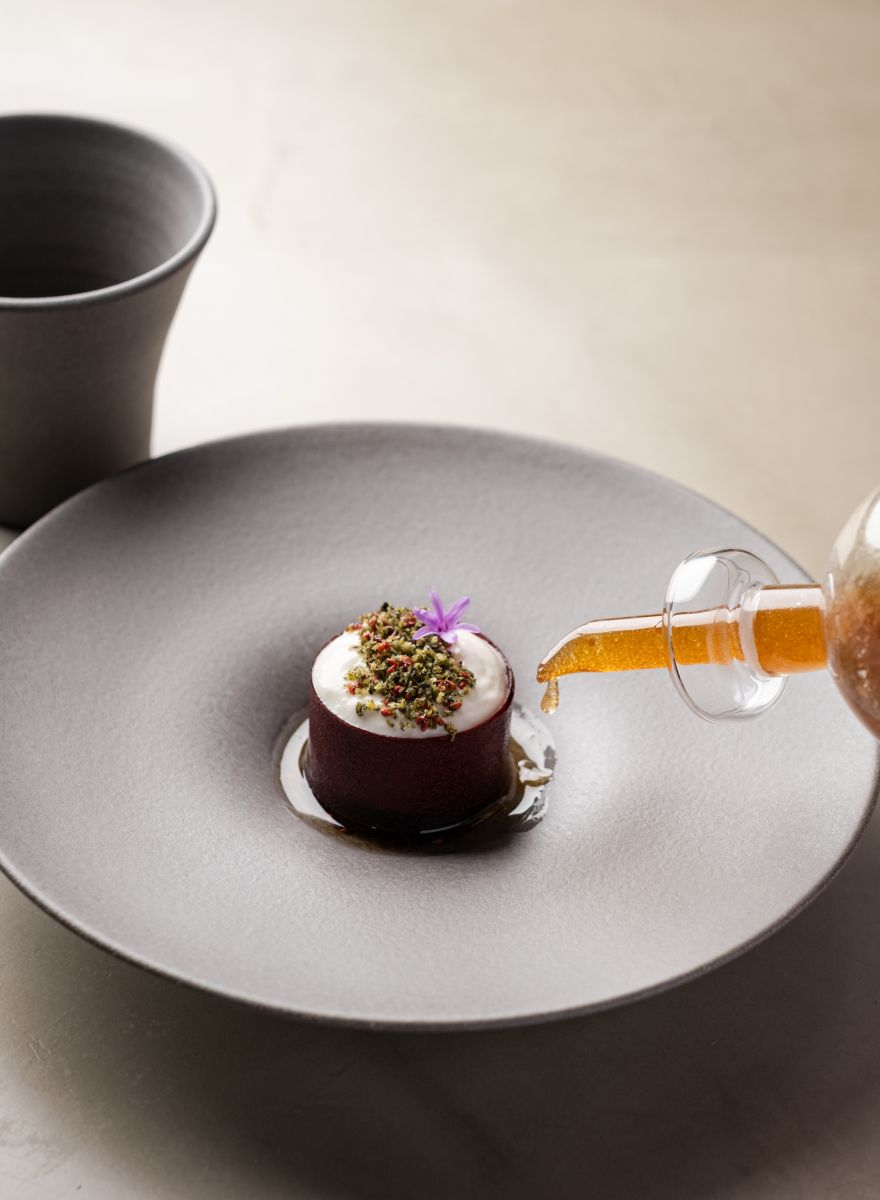 JRE-chef Yorick de Groot en gastvrouw Michelle Leone van Éclusier serveerden een uitgesproken creatie met langoustine, miso, aardpeer, Pata Negra, duindoornbes en bisqueschuim, waarin umami, diepte en frisse accenten elkaar in balans hielden. Éclusier richt zich op gasten die houden van detail, smaak en aandachtvolle, maar ontspannen service. Iets wat ook tijdens deze lunch duidelijk naar voren kwam.