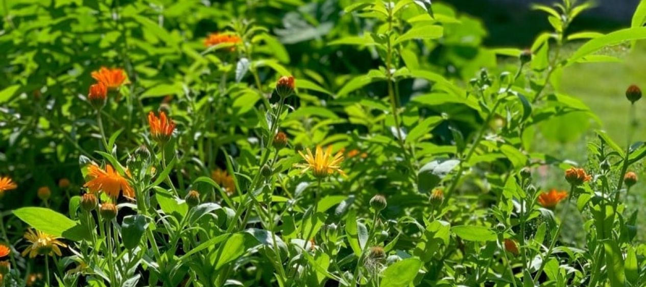 Aan welke kruiden en bloemen moet u denken? Onder andere aan vuurbloemen, bieslook, tijm, munt, Oost-Indische kers, oranje bloemen en verveine.