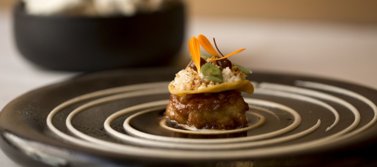 “De talentvolle chef barst van de creativiteit. Dat merkt u aan het dresseren, de diverse texturen en de bij momenten verrassende smaakcombinaties.”